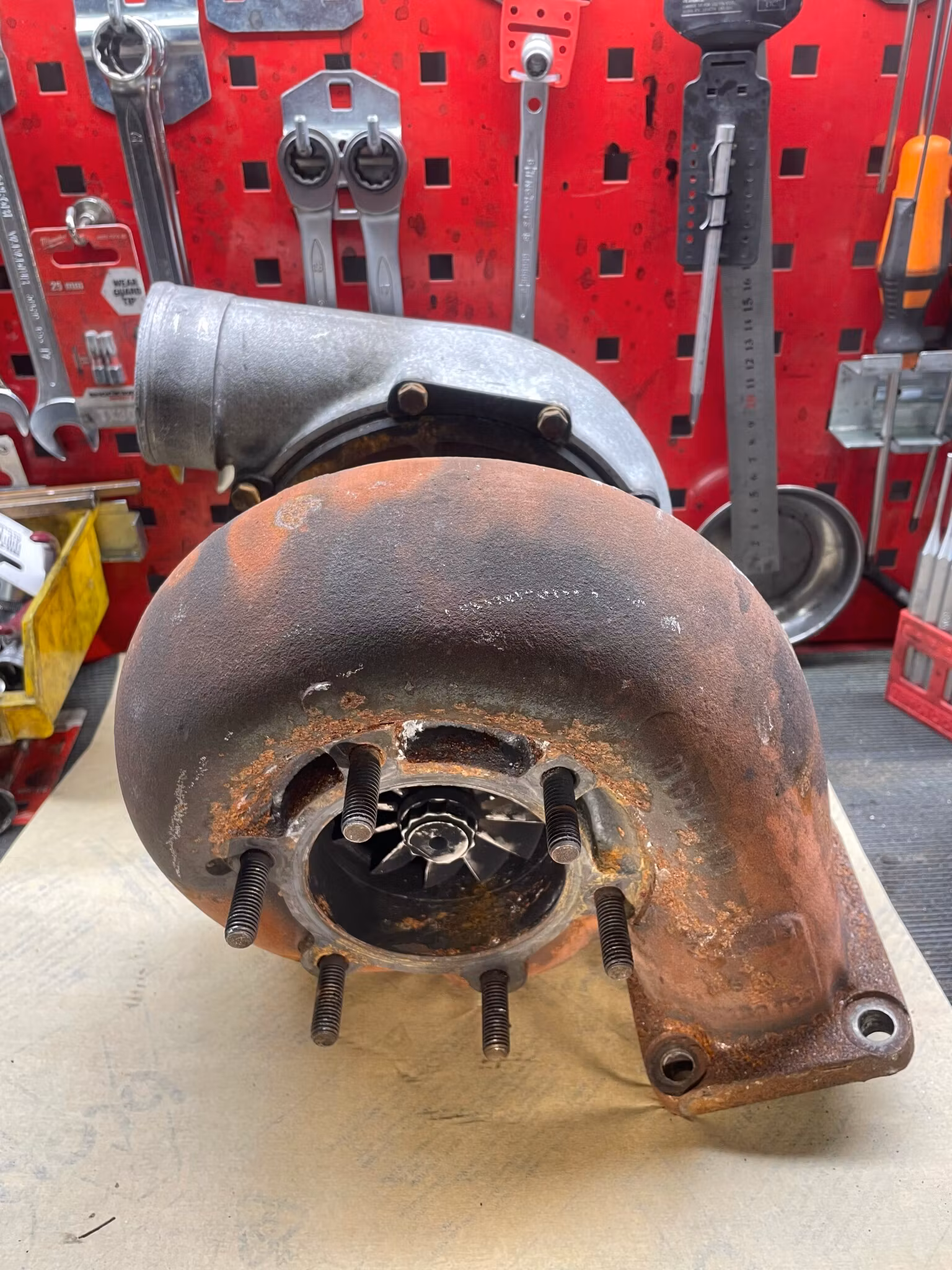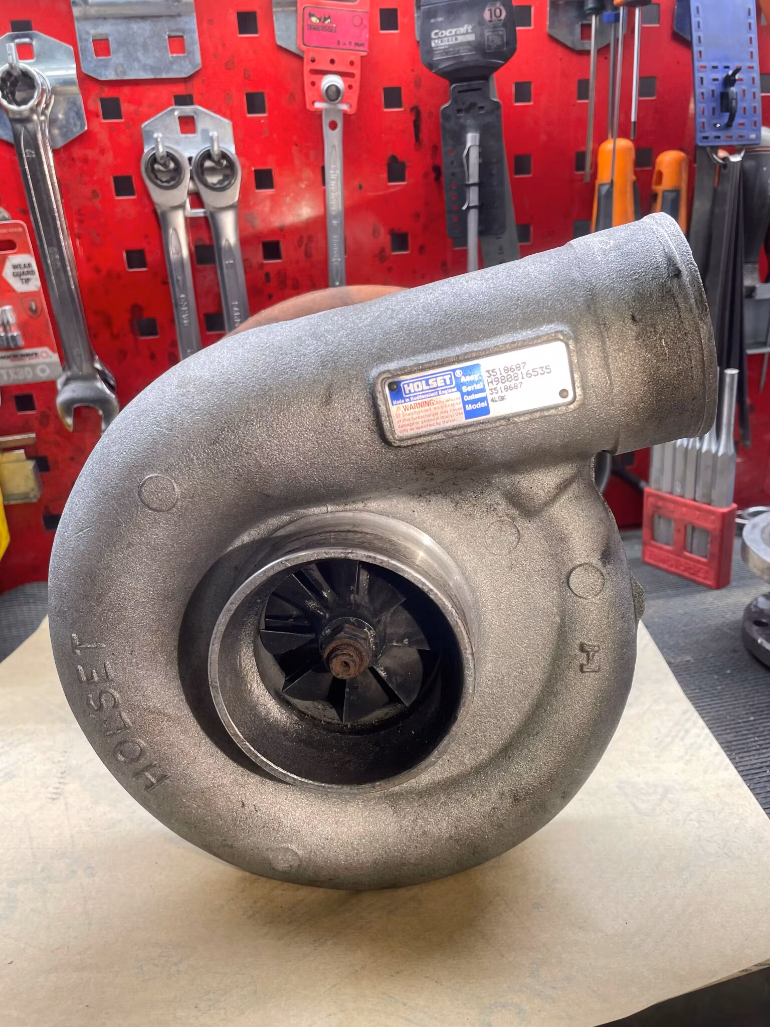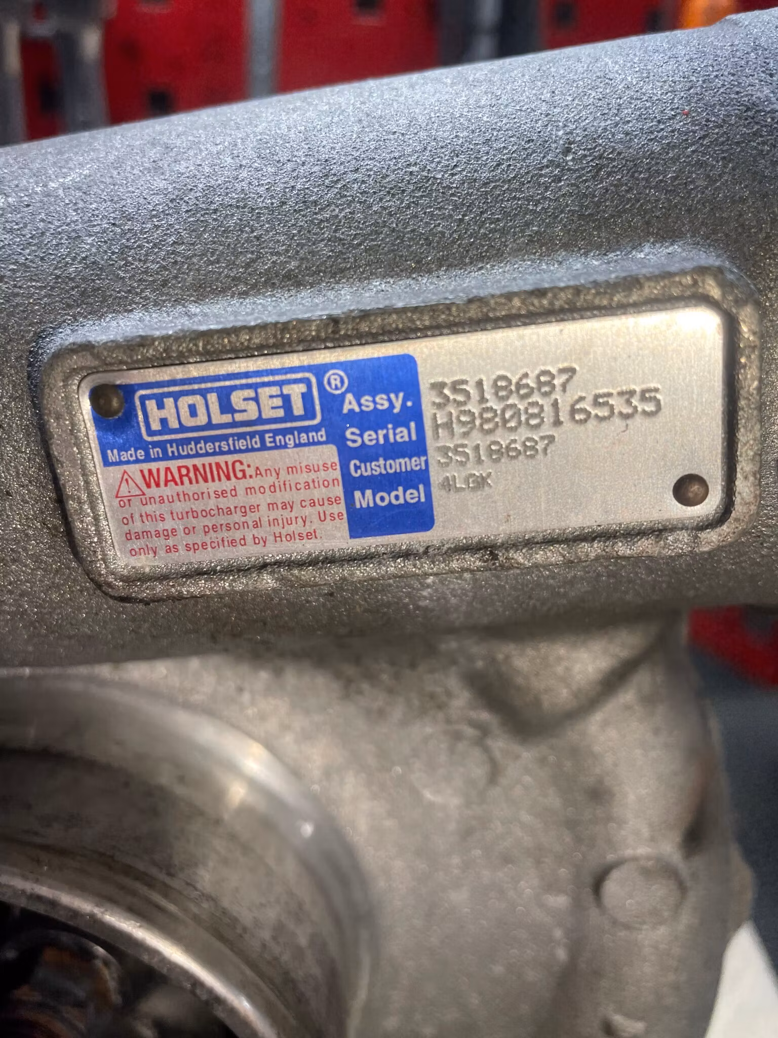 Begagnad Holset originalturbo med få driftstimmar som är avplockad från en fungerande motor som tagits ur drift. Timmarna är okända men på de vi kontrollerat tidigare så rör det sig ofta om 600-1000h i snitt. Dessa har suttit på motorer inom försvaret så väl skötta servicemässigt. De är dock ett antal år gamla och har fått ytrost och endel bränd olja i kompressorhus mm. Se bilder då det är på aktuella turbon eller en snitt turbo om vi har fler men funktionsmässigt ska det inte vara några problem och en billig originalturbo för äldre maskiner.