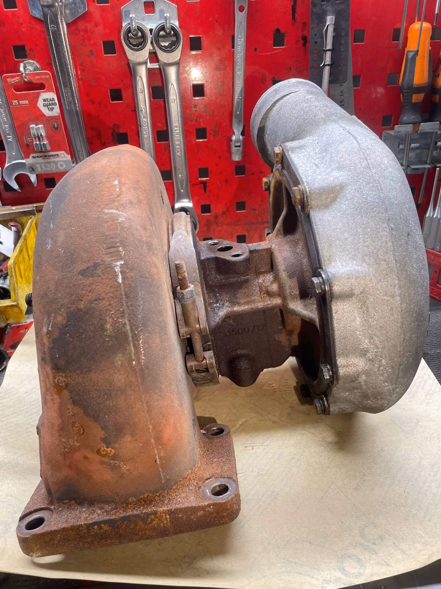 Begagnad Holset originalturbo med få driftstimmar som är avplockad från en fungerande motor som tagits ur drift. Timmarna är okända men på de vi kontrollerat tidigare så rör det sig ofta om 600-1000h i snitt. Dessa har suttit på motorer inom försvaret så väl skötta servicemässigt. De är dock ett antal år gamla och har fått ytrost och endel bränd olja i kompressorhus mm. Se bilder då det är på aktuella turbon eller en snitt turbo om vi har fler men funktionsmässigt ska det inte vara några problem och en billig originalturbo för äldre maskiner.