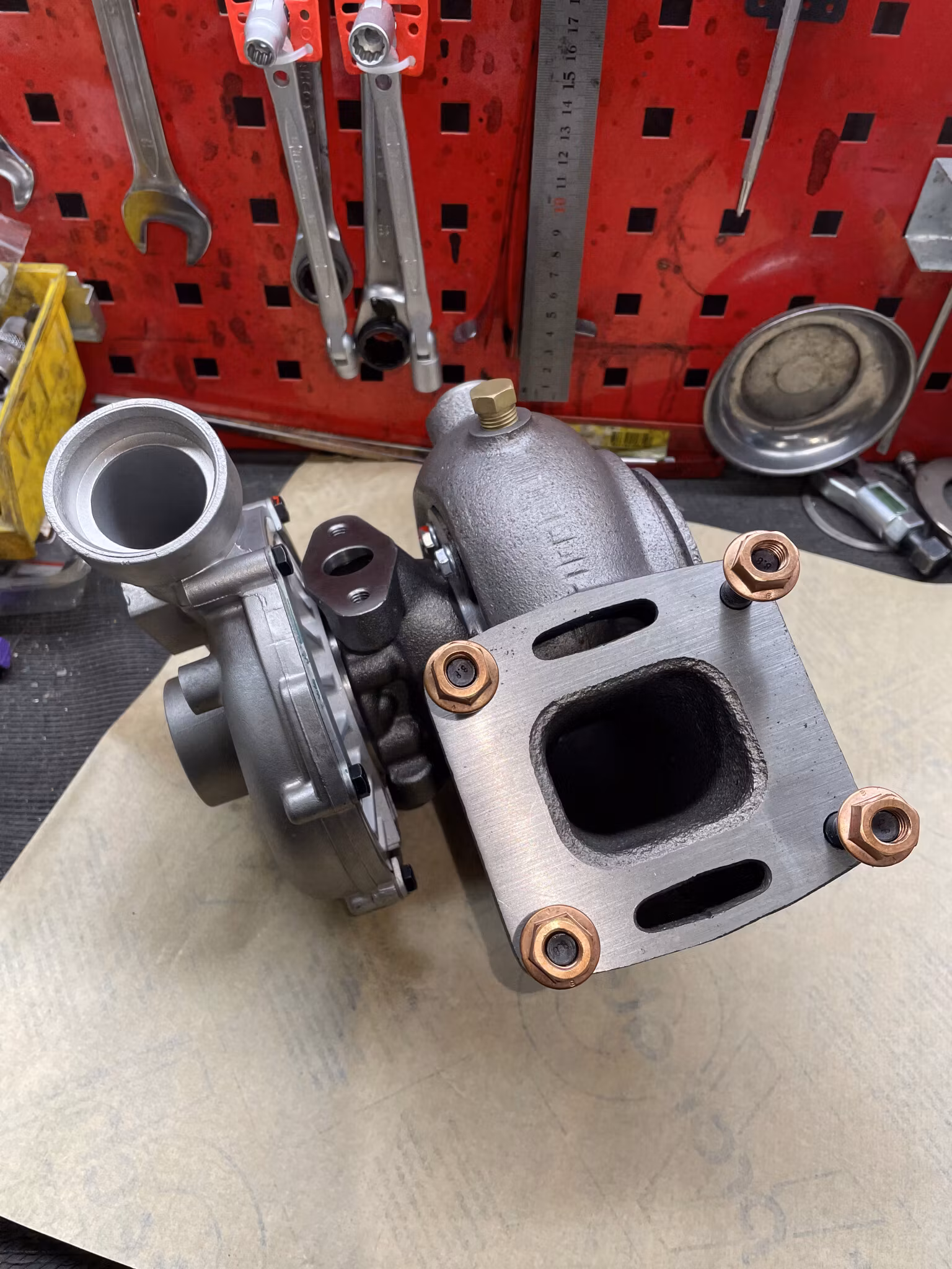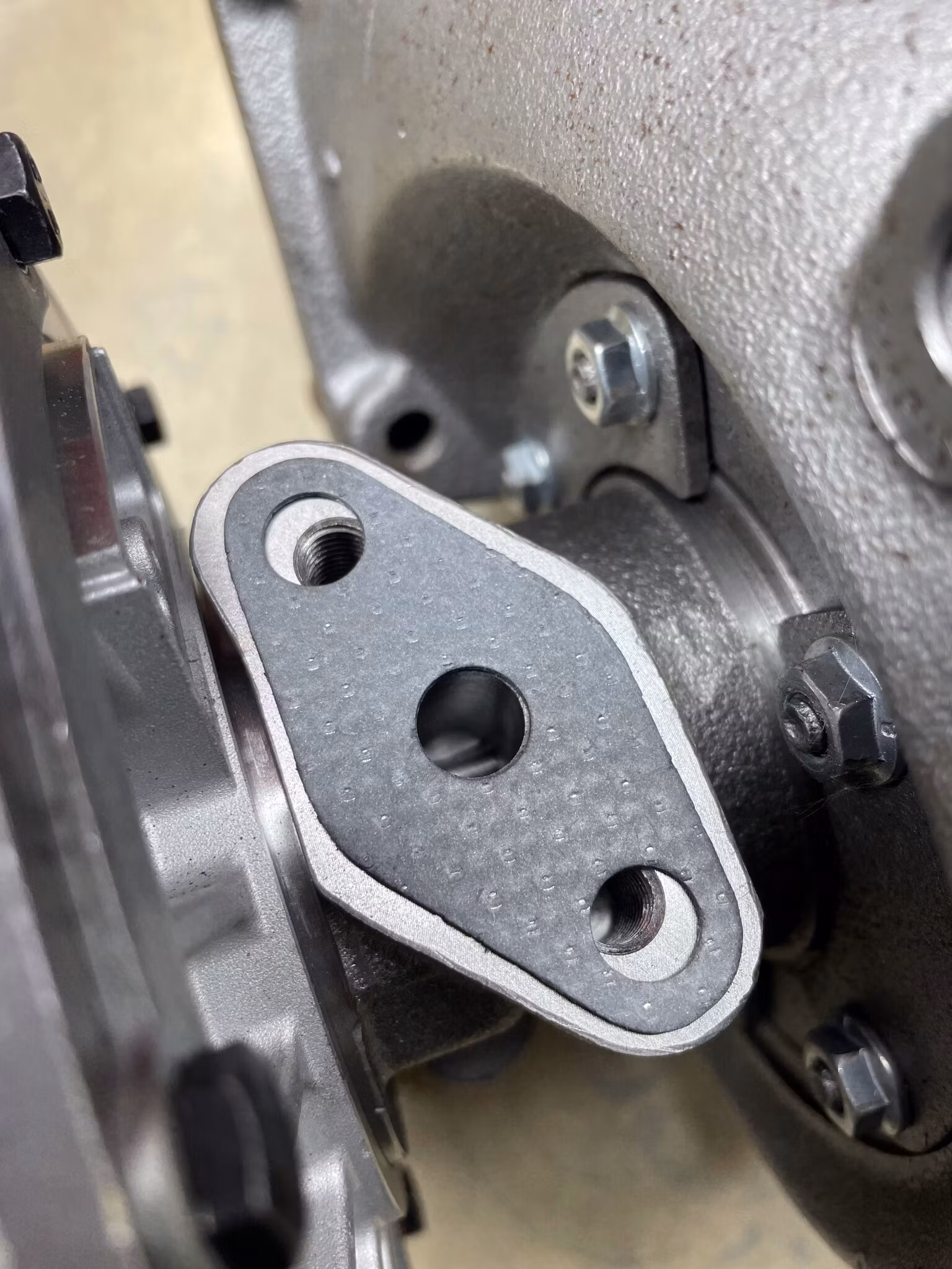 Denna turbo är nyrenoverad av annan firma med nytt lagerhus och turbinaxel. De har dock använt den senare verisionen av lagerhus som har ett annat bultmönster på oljeinloppet för TAMD40. Dvs original olja in slang kommer inte passa utan modifiering. Bultmönstret på bultarna är samma som på nyare tamd och kad motorer.