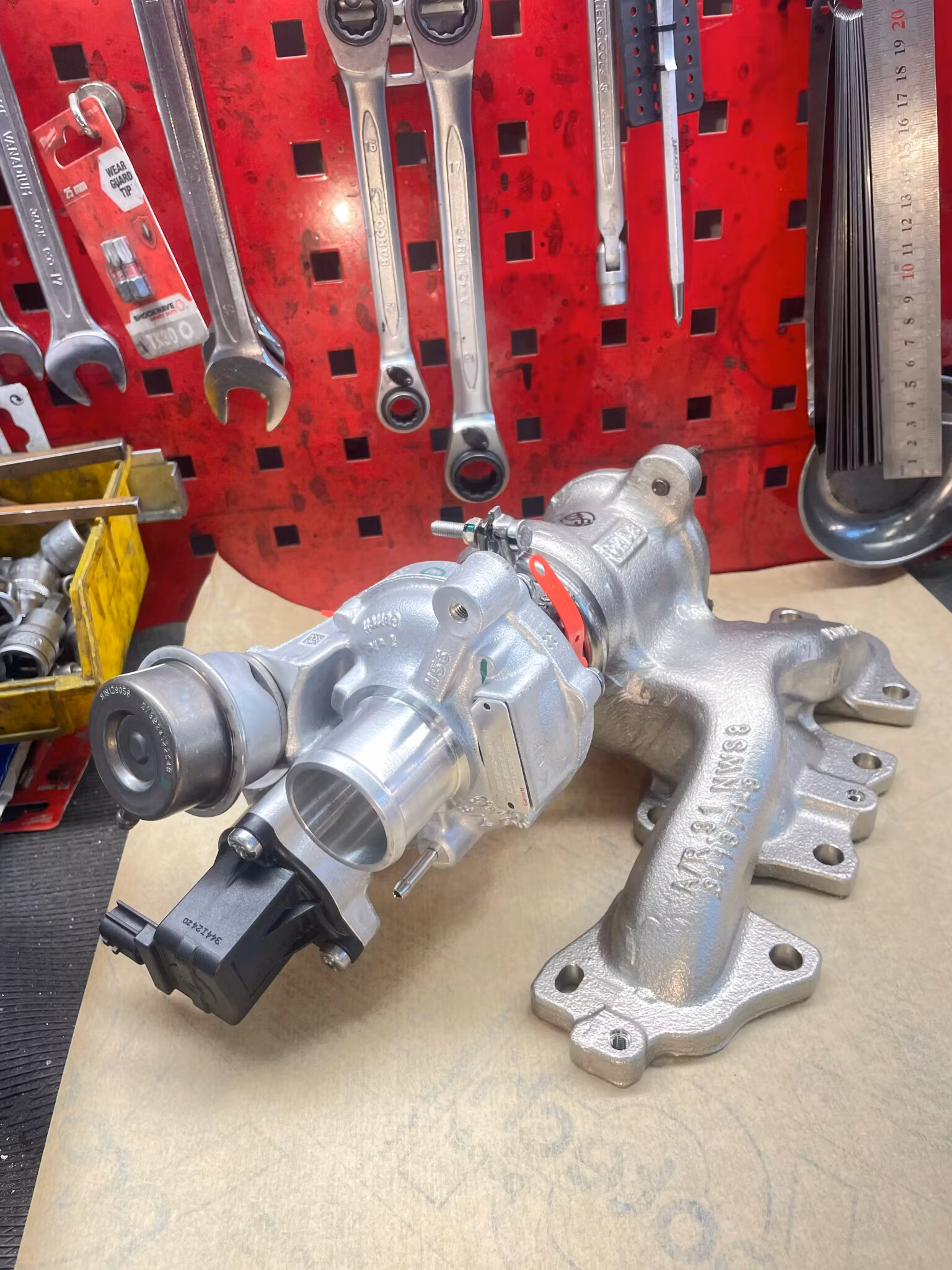 Komplett originalturbo inklusive grenröret. Turbomodellen från Garrett är NGT1038LMSZ